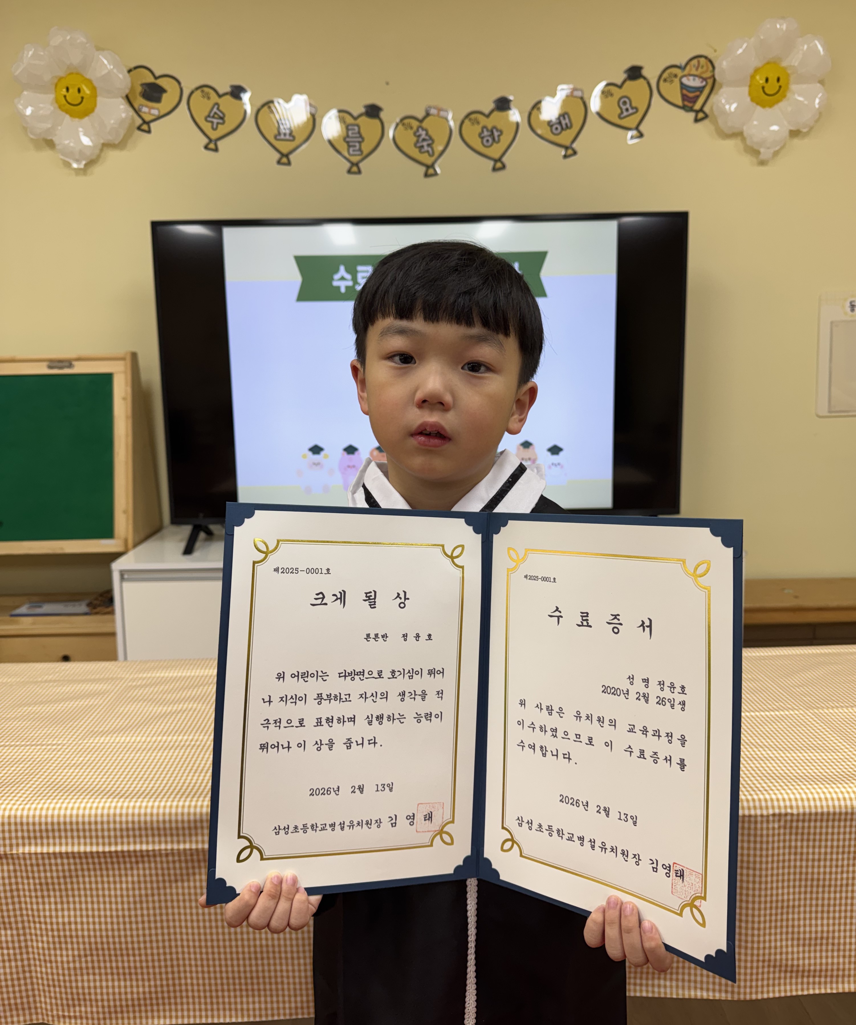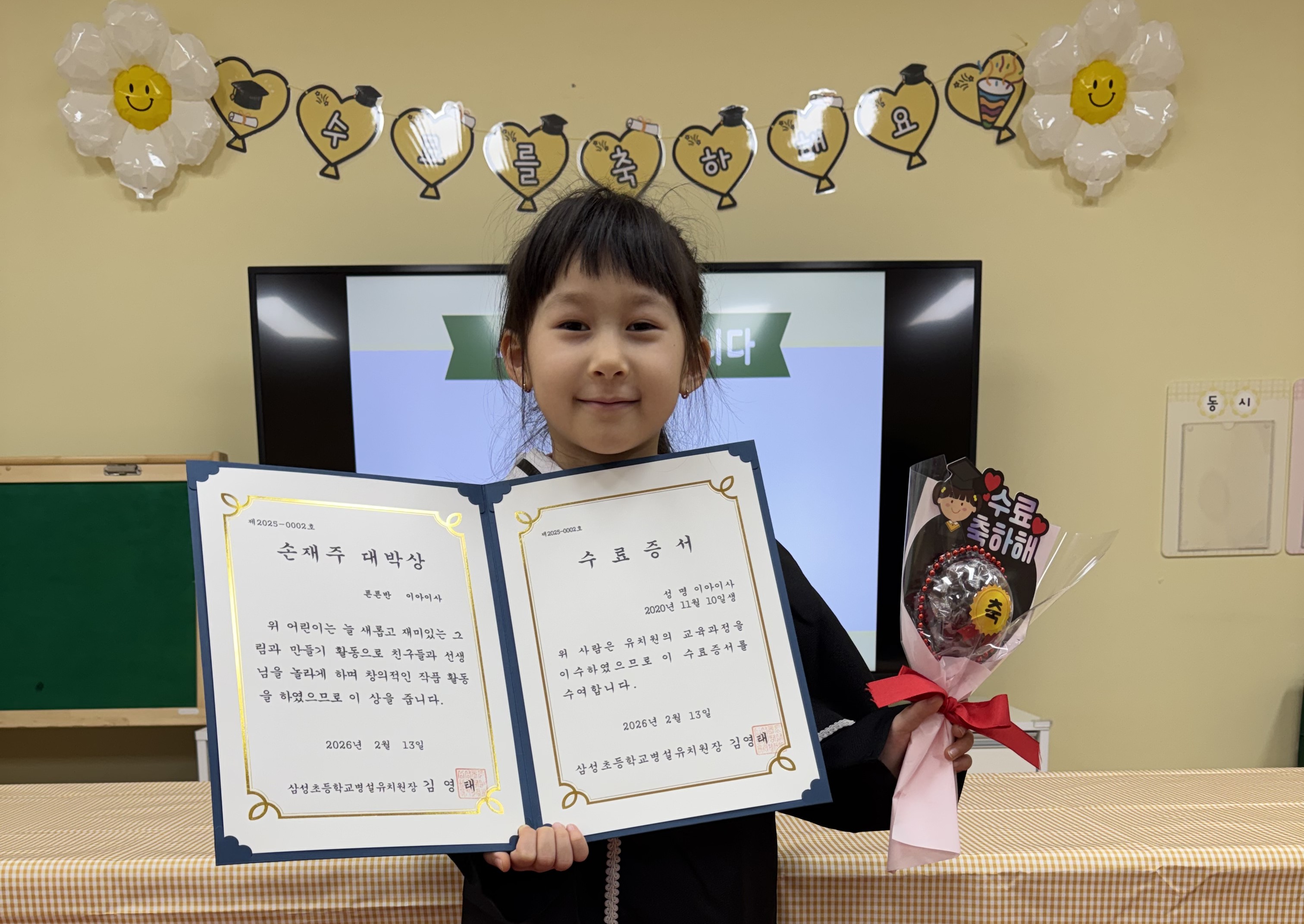 1년 동안 무럭무럭 자란 튼튼반 친구들을 축하하는 수료식이 있었습니다.