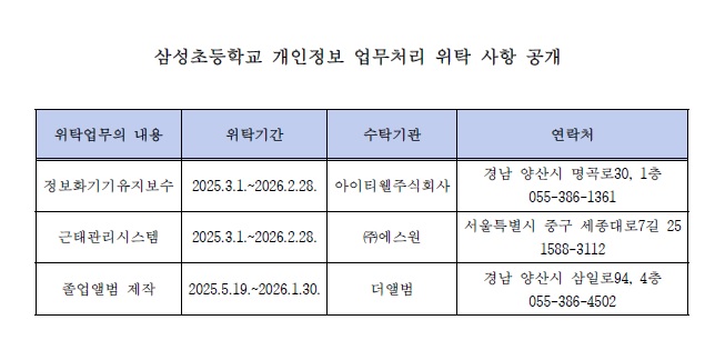 2025. 삼성초등학교 개인정보 업무처리 위탁 사항 공개